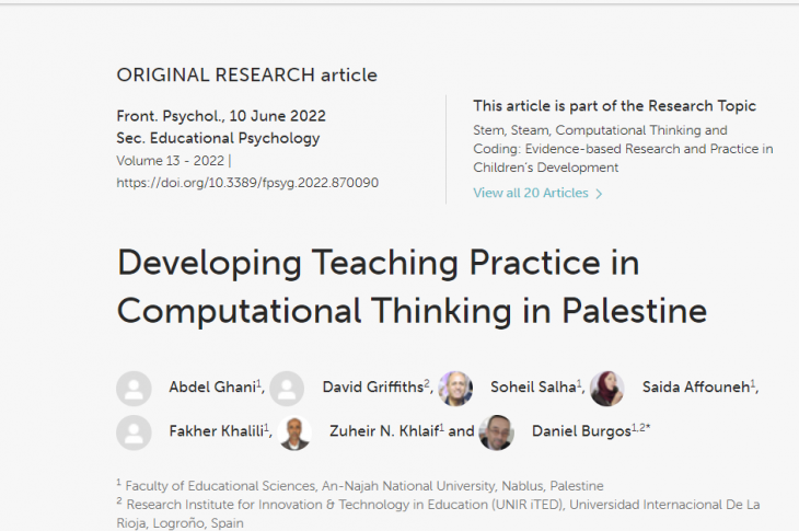 Developing Teaching Practice in Computational Thinking in Palestine