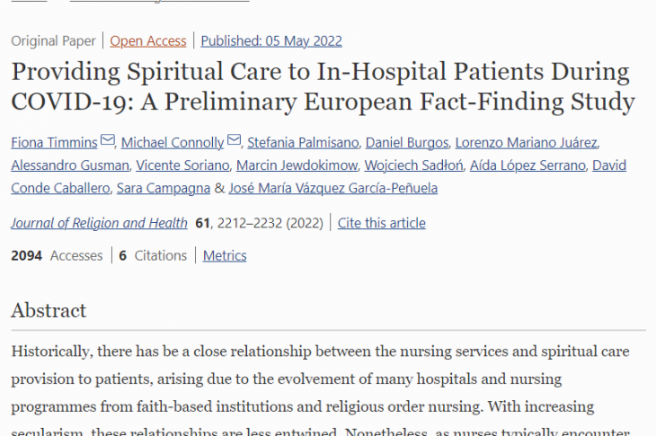 Providing Spiritual Care to in-hospital patients during COVID 19: A Preliminary European Fact-Finding Study