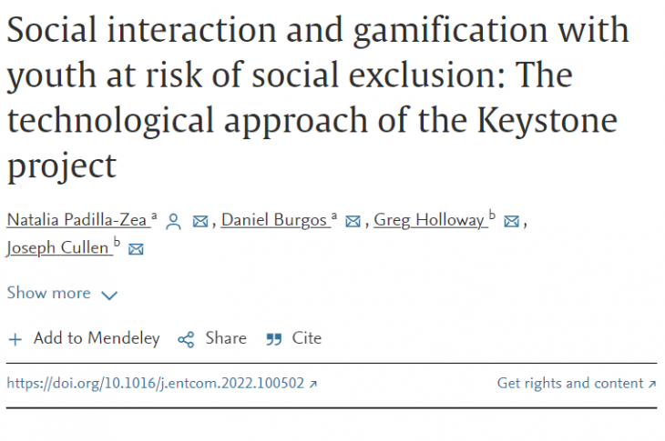 Social interaction and gamification with youth at risk of social inclusion: The technological approach of the Keystone project
