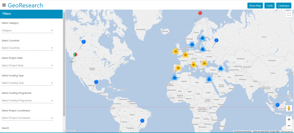 From 2012 to date, this interactive map (GeoResearch) shows active and historical international research projects developed by the Research Institute for Innovation & Technology in Education (UNIR iTED), at Universidad Internacional de La Rioja (UNIR). Various combined filters can be selected, such as funding source, main research topic or country. The interactive map below shows a legend that explains the meaning of each pin. In addition, the selection is displayed in three formats: Geolocated on the map, in tab format and as a direct list of the catalogue in the database. Each project provides a summary description, as well as a link to extended information. Enter and find the international research developed by UNIR iTED!