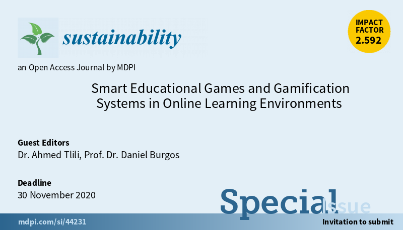 With my friend Ahmed Tlili, from Smart Learning Institute at Beijing Normal University (BNU), we has just launched a special issue about Smart educational games and gamification systems in online learning environments (call-for-papers, PDF). Sustainability Journal, thanks to the editor Katherine Peng, supports this initiative. I paste below the summary: